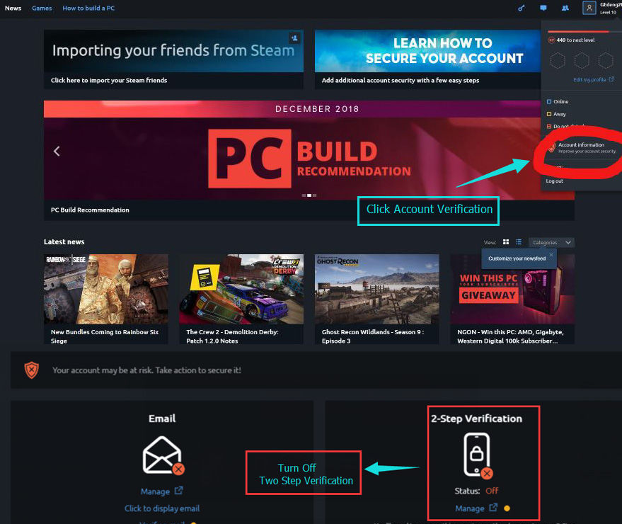4. TURN OFF your Uplay account Two Step Verification beforehand.